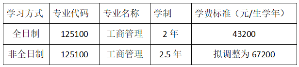 南开大学2019级工商管理硕士研究生(MBA)学费标准