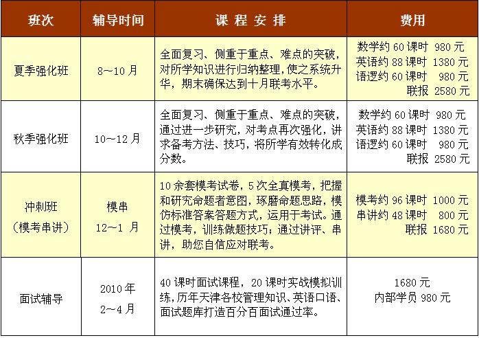 现在报名2010年MBA 夏季强化+秋季强化+模考冲刺 辅导,还可享受以下优惠: