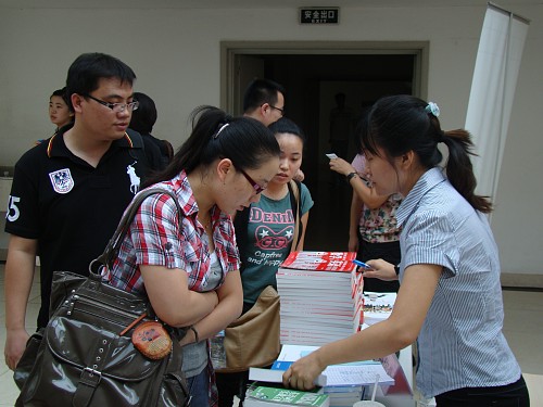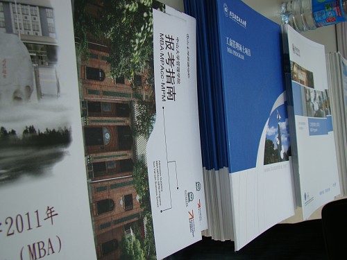 入场前,准备好的各种招生简章 学生们免费索取各校招生简章