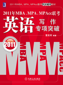 本书系机械工业出版社结合2011年MBA / MPA / MPAcc考试大纲出版的同步辅导教材,结合英语(二)的作文部分由原来的20%增加到25%的变化,帮助考生从有效可行的写作方法入手,使考生彻底克服对英语(二)写作的畏难心理。