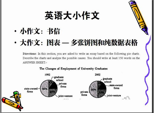 考试前一周,百川命中英语大小作文。其中英语小作文给的范围缩小至书信内容,大大节省了同学的备考时间,大作文更是给出了双饼图(与真题的双柱图形式不一样但是实质一样),范文及模板都非常精准,使百川学员在考场作答自如。