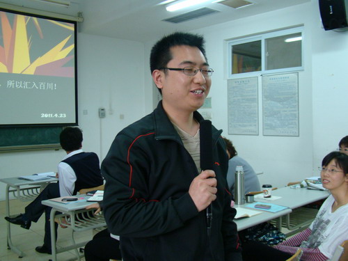 4月23日--是基础班开学的第一天,外院班的同学们个个都精神饱满的来参加开学典礼!虽然室外天气有些阴沉并下起了淋淋沥沥的小雨,但是开学典礼的气氛依然很热烈!外院班的同学们,希望你们在这一年的备考过程中,一直葆有这种饱满的精神! 套用典礼中老学员的祝福“愿你们在一年的时间内,收获良师益友,收获充实的生活,收获自学的能力和习惯,收获人生新的起点”!(额外祝福单身的同学,一箭多雕,能收获携手一生的伴侣~ ) 百川校长高霞老师主持开学典礼: 百川老学员在介绍备考经验: 同学们听得很认真: 同学们在进行自我介绍: