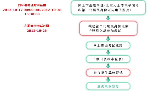 2012年在职人员攻读硕士学位全国联考网上报名工作于6月25日至7月10日进行,中国学位与研究生教育信息网“在职人员攻读硕士学位管理信息平台”是本次网上报名的唯一指定报名平台。