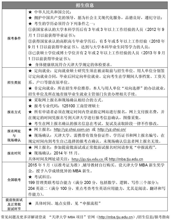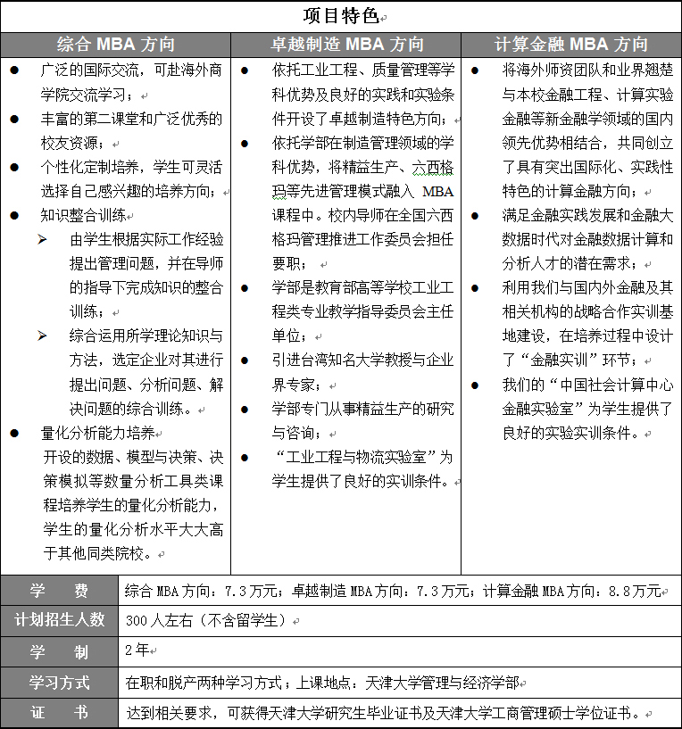 天津大学管理与经济学部专业学位与高级管理培训学院MBA项目