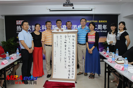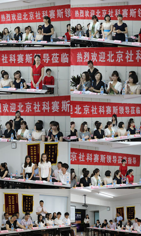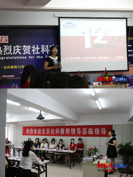 随后,天津分校百川社科赛斯校长王丽娟女士向北京社科赛斯领导及与会人员做精彩的心历分享,分别展示了天津社科赛斯教育的“过去、现在和未来”,并用其特有的“丽娟体”概括了天津分校近年来所取得的成绩。庆典中,主持人曲静校长分别从财务、人事、招生团队、教务组三部分,向各位领导及参会同仁做了详尽的部门介绍。同时,各部门的员工代表也分别向与会领导做自我介绍及精彩的发言。紧接着,由徐铭老师将从筹建至完善,成长7个月的网络部这支“新生力军”展现在大家面前,展现了从目前的“支持”状态到未来“盈利”状态的信心。来自中国MBA教育网天津部负责人高巍在庆典中对集团成立12周年及天津乔迁之喜表示热烈的祝贺,随后就目前中国MBA教育网现状以及未来做了简短的介绍。
