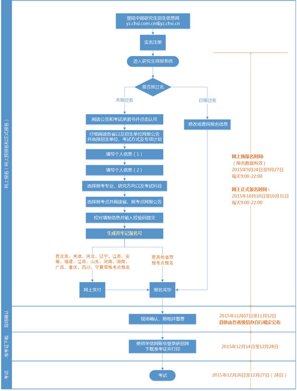 2015年全国硕士研究生招生考试网上报名时间及流程