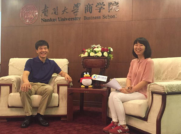 6月22日下午,腾讯网教育频道做客南开大学商学院,在2016年南开大学MBA招生说明会召开之际,采访到南开MBA中心主任、南开大学创业研究中心副主任薛红志副教授及主管招生工作的陈琰老师以及在校学生代表刘峰同学。