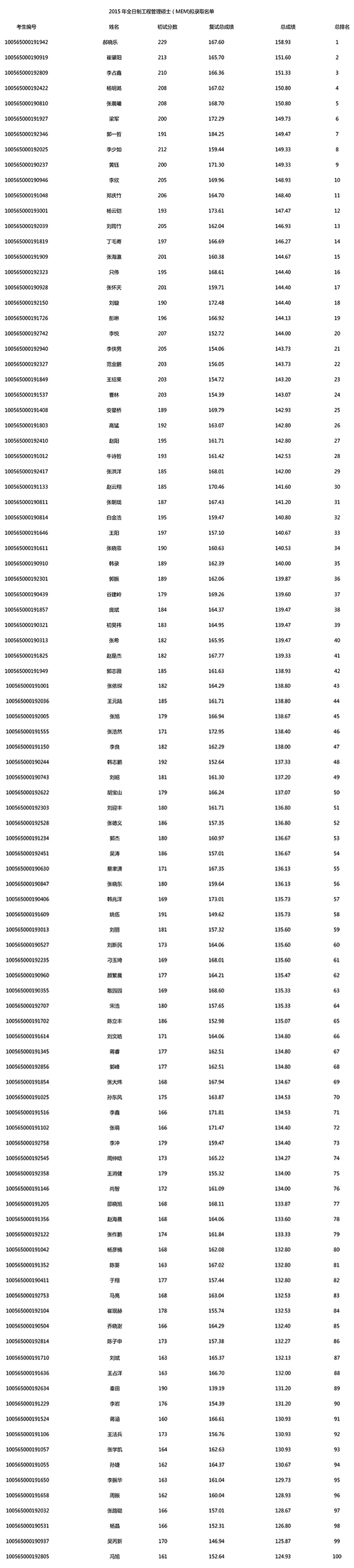 天津大学2015工程硕士(MEM)拟录取名单公示