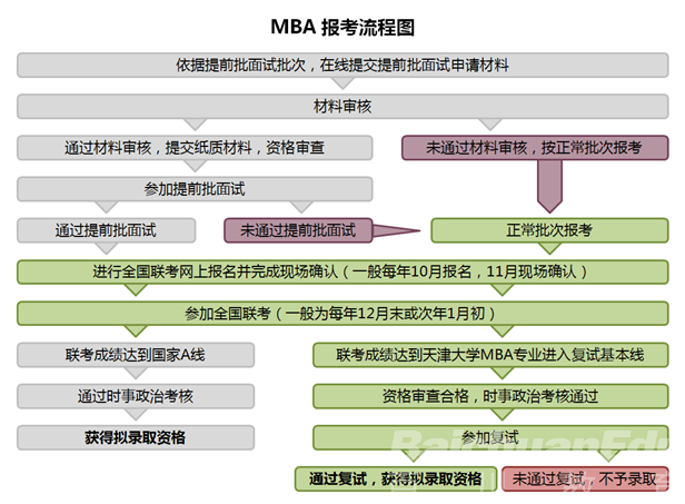 未能通过提前批面试的考生,按照正常批次考生要求,联考成绩达到天津大学MBA专业进入复试基本线,可进入复试,择优录取。