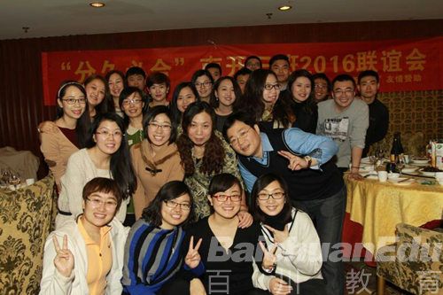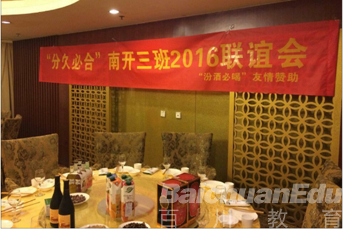 桃未芳菲杏未红,寒冬相聚话真情。2016年1月9日,由百川教育南开三班同学自发举办的“分久必合南开三班2016联谊会”在晋滨国际酒店3楼茉莉厅举行。南开三班同学和百川教育的三位老师热情出席。联谊会上大家把酒话家常,话里话外全是浓浓的真情。5个小时的聚会里,各位老师和同学越聊越兴奋,越聊情越浓。