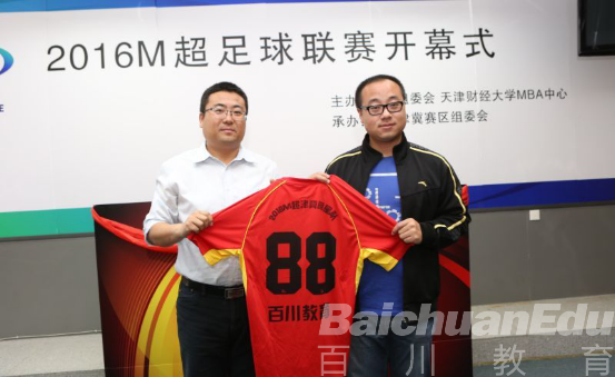 会议期间,天津财经大学MBA中心王玺全想百川教育赠予了M超足球联赛津冀明星联队队服。