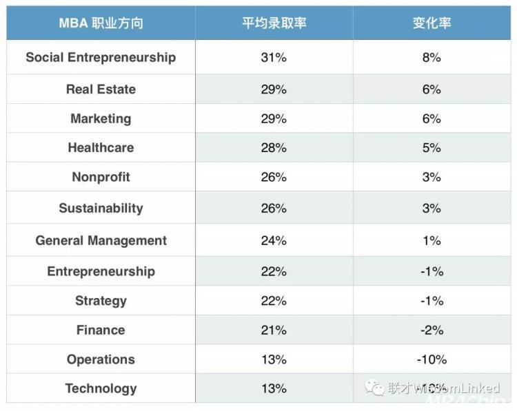 正好手边有一份MBA各专业方向录取率的分析(基于GMAT Club的录取数据)。那么今天我们就结合这份数据来一起解读下哪些专业方向更受商学院招生办的喜爱。