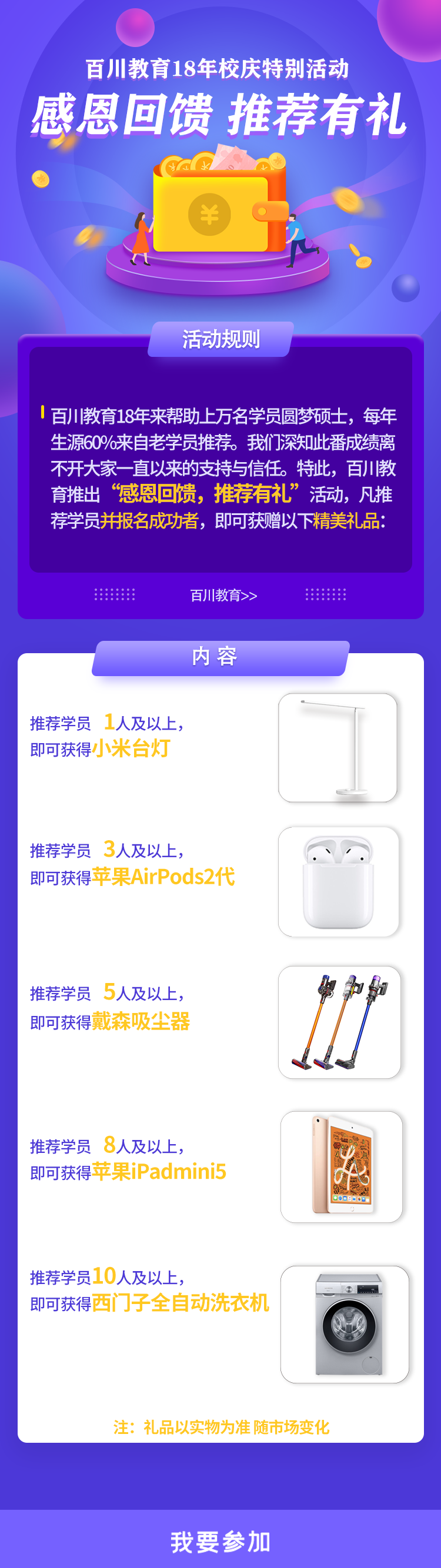 感恩回馈,推荐有礼丨百川教育18年校庆特别活动