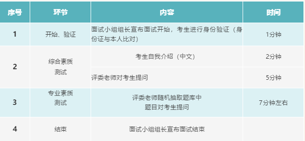 3.考生首先进行2分钟中文自我介绍,然后进行回答及自由问答环节,最后完成面试。