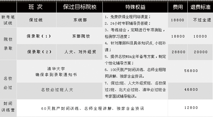 选择百川.社科赛斯魔鬼训练营的八大理由 ⑴ 全封闭式教学管理,保证良好的学习气氛。社科赛斯魔鬼训练营倾情推出全封闭式教学,为全脱产、时间充裕、自制力不强的考生提供了一个及复习、休息、共同目标院校学员复习进度展示和学习氛围的全方位学习空间。在这里,你可以心无杂念,感受到最紧张的学习气氛,掌握第一手最新的复习资料,得到最有效地复习方法,抓住复习的最佳时间,以至于调整自己的复习状态,保证最良好的复习!在这里,两耳不闻窗外事,一心备考MBA! ⑵ 权威师资,为你的MBA联考之梦插上双翼。自建立社科赛斯魔鬼训练营项目以来,一直本着“以学员为中心、以分数为根本”的服务宗旨,尽心竭力为考生请到MBA联考领域最优秀的名师执教,“社科赛斯魔鬼训练营”聘请名校名师担任授课教师,打造最佳完整的师资队伍;他们对命题规律、考核重点、阅卷标准、答题技巧等决定考生得分的关键性因素了如指掌,竭力为广大MBA备考学员量身定制专项辅导课程。 ⑶ 60天全程监控,注重学员实际考试能力的提升。在社科赛斯魔鬼训练营,班主任、教务、助教、答疑老师全程跟踪,掌握学员第一手复习情况,同时有针对性的进行督促和引导;同时社科赛斯魔鬼训练营设置心理调控咨询,全方位掌握和帮助考生情况,提高考生实际复习效果。 ⑷ 专业权威的教练。魔鬼训练营依托北京社科赛斯教育集团的专业权威的教练团队,这些团队都曾考过MBA,如何规避考生的缺点、如何激励考生、如何劳逸结合、如何提高学习效率、如何事半功倍、如何少走弯路错路…… ⑸ 秘训课程,讲解最具价值的联考知识点。社科赛斯魔鬼训练营按照阶梯递进的思路进行全程授课,加强基础训练、真题破译、习题训练、考点精讲、模拟考场、冲刺串讲等阶段循序渐进、步步为赢。做到每天一练,温故而知新,对考点、知识点扎扎实实掌握。全面俯视各个知识点,将联考全局置于掌控之中,圆您六十天进名校之梦。 ⑹ 以人为本,个性化服务,为联考学员量身定做的规划和全程辅导体系。社科赛斯魔鬼训练营多年以来一直专注于MBA联考辅导;研究帮助学员短时间迅速提高综合应试能力,从而最终跨入理想的学府。针对不同院校专业制定不同的学习辅导策略和辅导方案,将个性化服务贯穿于辅导过程的始终。 ⑺ 独创教学法和辅导技术,效果显着。经过5年的潜心教学研究和亲身体验名校MBA的学习,社科赛斯教育集团总裁--甄诚,成功培养出了近千名北大、清华、复旦、上海交大、中山大学、人大等名校考生。从基础,强化、模考、串讲、临门一脚,其安排科学合理、教和学合理搭配、每个阶段都有不同程度的强化习题训练、并且配备专门的集中习题训练,能够使教过的知识,扎扎实实掌握到学生的手里,真正实现从“老师会”到“自己会”,从“听懂”到“得分”的转化。在魔鬼训练,想不学都很难,想考不上都很难!每天15个小时的高强度、高效率、的训练是你在家里自学10天的效果。 ⑻教室环境优越。社科赛斯魔鬼训练营 一体式学习环境,免去学员不必要的时间浪费,使学员安心的利用时间学习;同时有专人负责协调住宿,解决学生学习和休息的后顾之忧,增加学员交流沟通的学习机会,互相借鉴,互相激励学习。