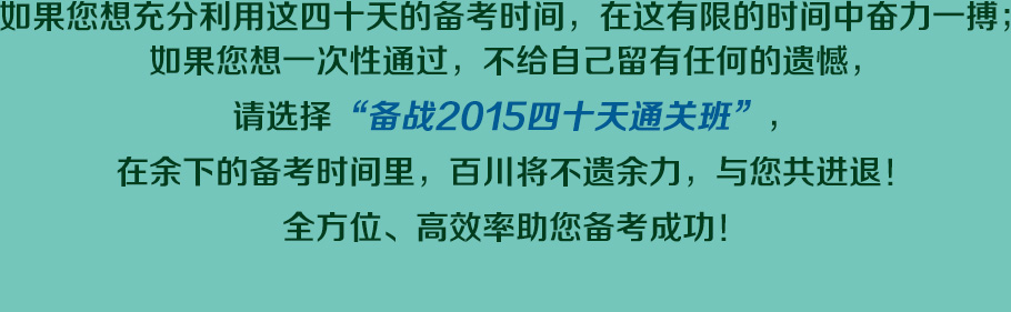百川拥有专业的员工团队,完整的服务体系,能实时监督各学员的学习进度,并协助制定学习计划,在任何重要节点都会适时对您进行提醒,确保您备考路上无死角,是您学习期间的导航。
